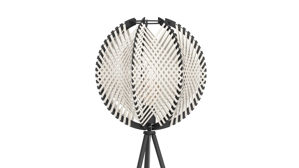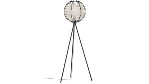 Lampenschirm aus schwarzem Holzwerkstoff umwickelt mit weißem Textilband
