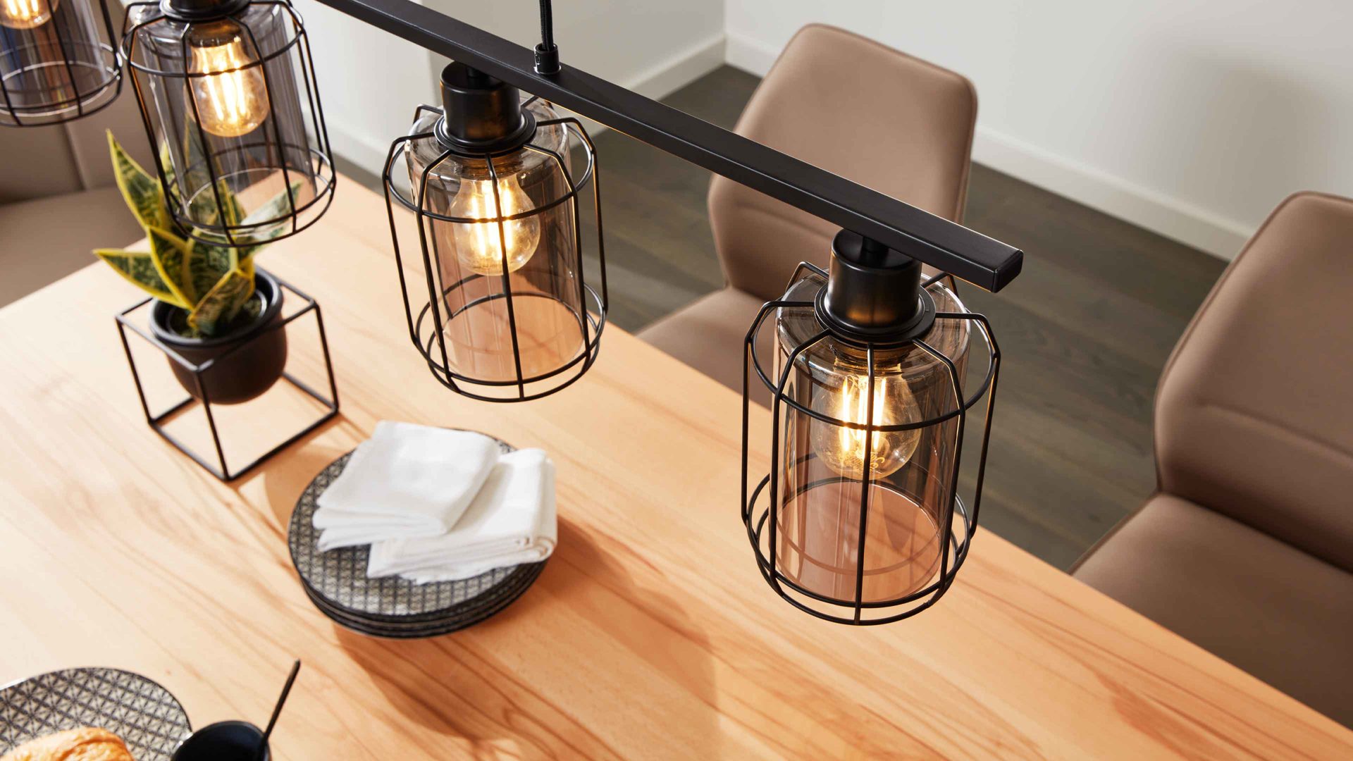 Mit ihrer Basis aus klassisch mattschwarzem Metall und den vier Lampenschirmen aus rauchfarbenem Glas vereint die Hängeleuchte aus der Interliving Leuchten Serie 9331 moderne Eleganz mit dem unverwechselbaren Charme des beliebten Industriestils. Das harmonische Zusammenspiel aus kühlem Metall und getöntem Glas sorgt für ein stilvolles Ambiente – perfekt für dein Esszimmer oder deine Küche.