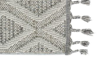 Nutzschicht aus 100% Polypropylen, mit Einfassband und Fransenkanten