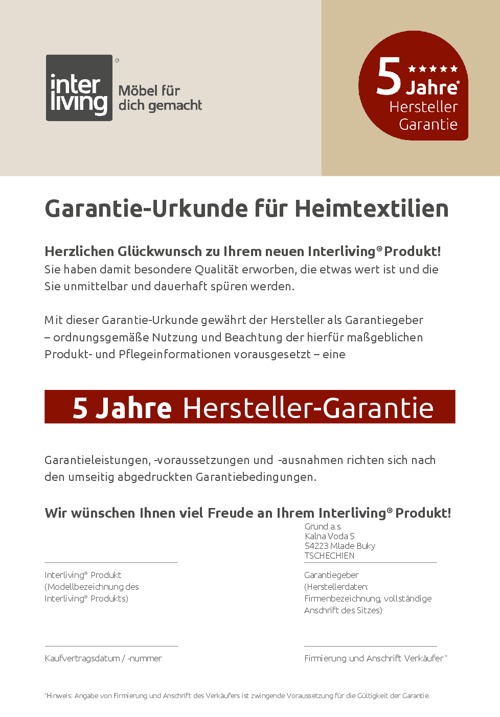 Dazu hat das gesamte Badteppichprogramm 5 Jahre Herstellergarantie.