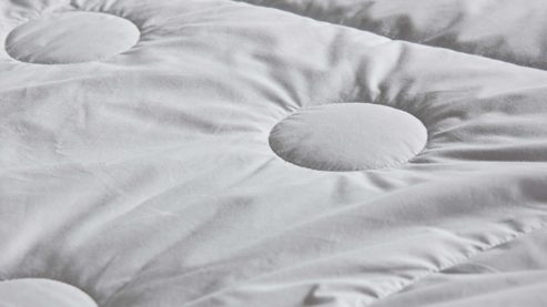 Der Bezug aus feinstem Edel-Batist Nm 100 mit soft finish (Deutsches Gewebe) besteht aus 100 % Baumwolle und fühlt sich besonders glatt und angenehm auf der Haut an. Dank der feinen Steppung passt sich die Decke perfekt deiner Körperform an und umhüllt dich mit wohliger Leichtigkeit.