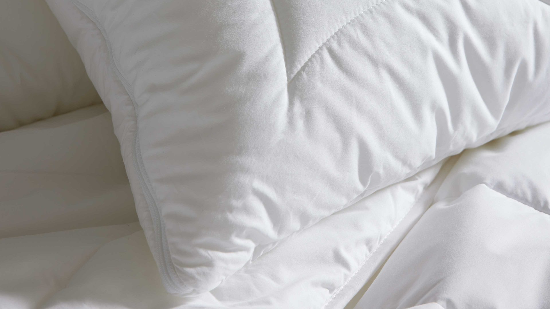 Der feine, weiße Bezug aus hochwertigem, gestepptem Edel-Batist Nm 100 (D) fühlt sich wunderbar glatt und weich an. Im Inneren steckt durchdachte Technologie: Die Füllung besteht außen aus superleichter Hollofil® Spring 3D-Markenfaser und im Kern aus hochbauschigem Faserflaum. Diese Kombination sorgt für ein elastisches, anschmiegsames Liegegefühl – mit optimaler Unterstützung für Kopf und Nacken.