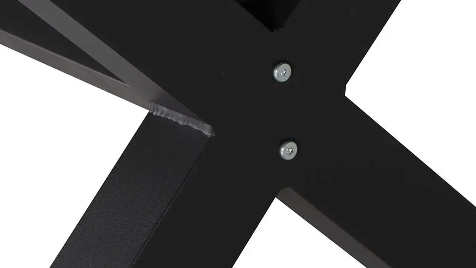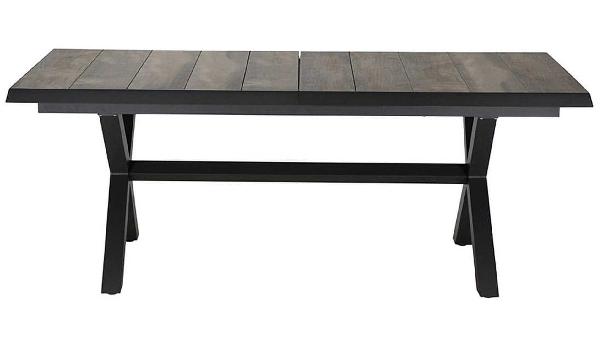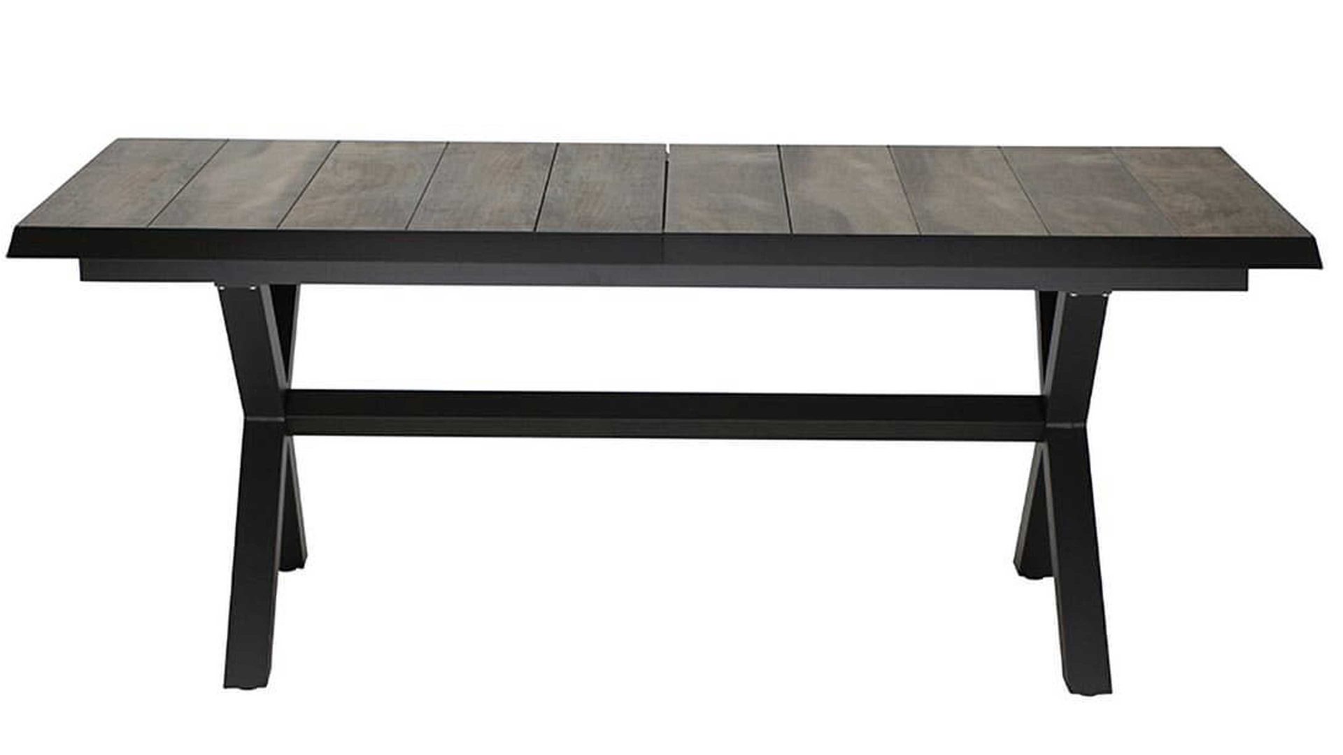 Keramik-Tischplatte im Farbton washed grey und matt anthrazitfarben pulverbeschichtetes Aluminium
