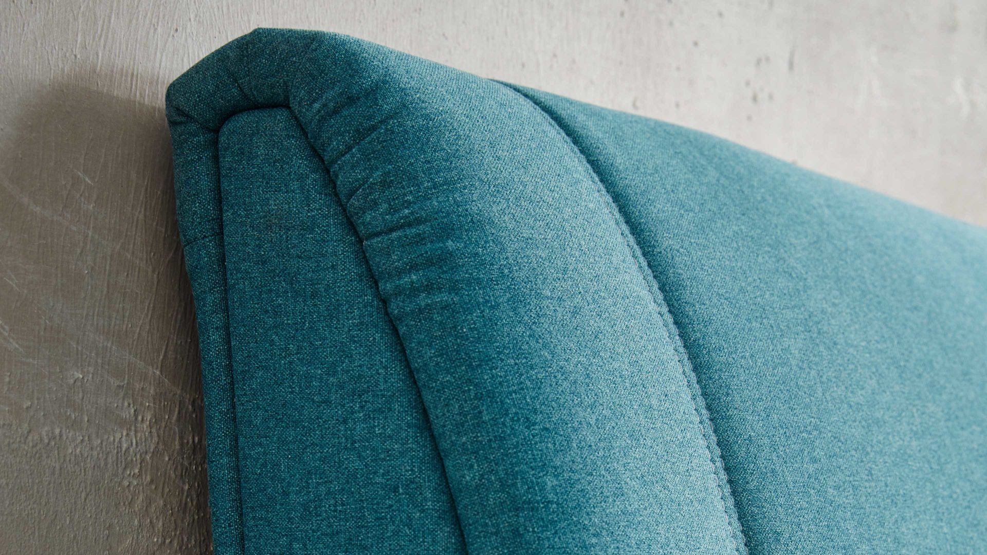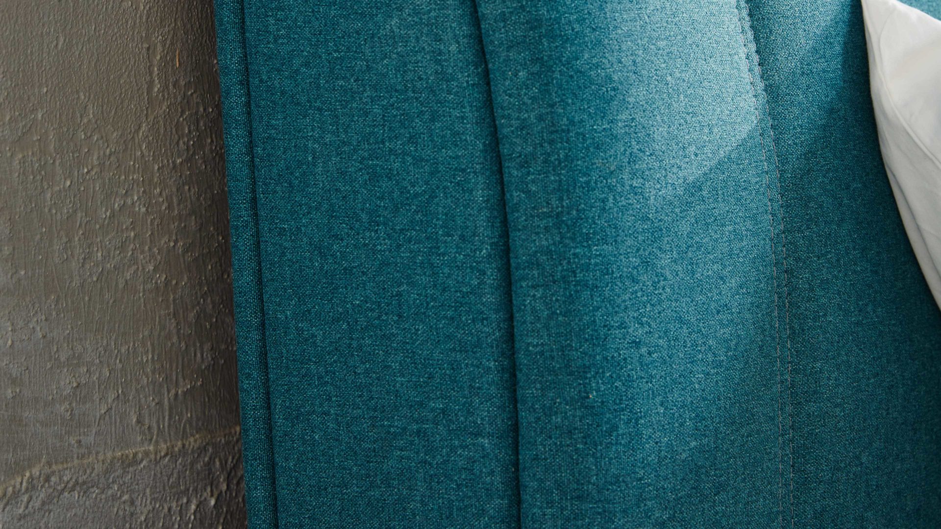 Der Stoffbezug in intensivem Petrol bringt frische Farbe ins Schlafzimmer und harmoniert perfekt mit der leichten Schwebeoptik. Anti-Rutsch-Einsätze halten die Matratzen sicher an Ort und Stelle, während die integrierte CLIMABOX-Technologie ein ausgeglichenes Schlafklima unterstützt. Auf Wunsch ist der ca. 26 cm hohe Unterbau mit einem praktischen Bettkasten erhältlich – ideal, um Bettwäsche oder Decken dezent zu verstauen.