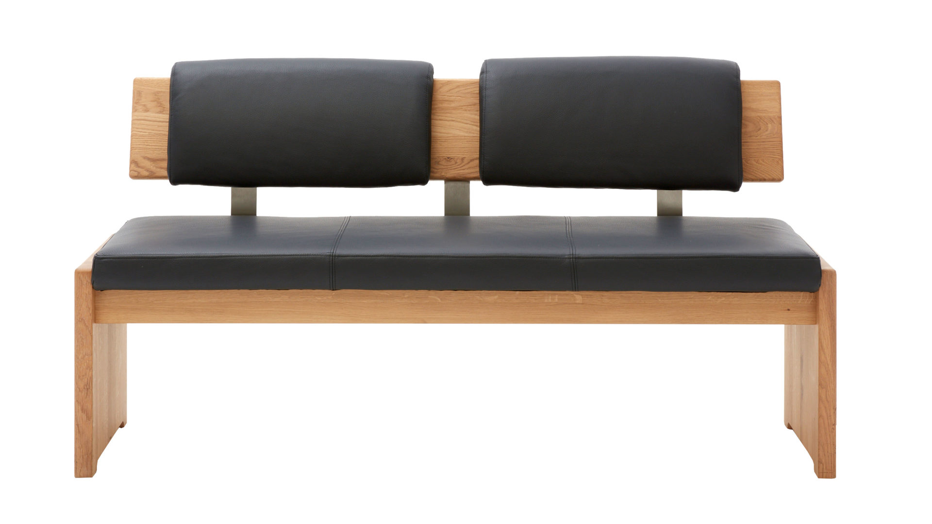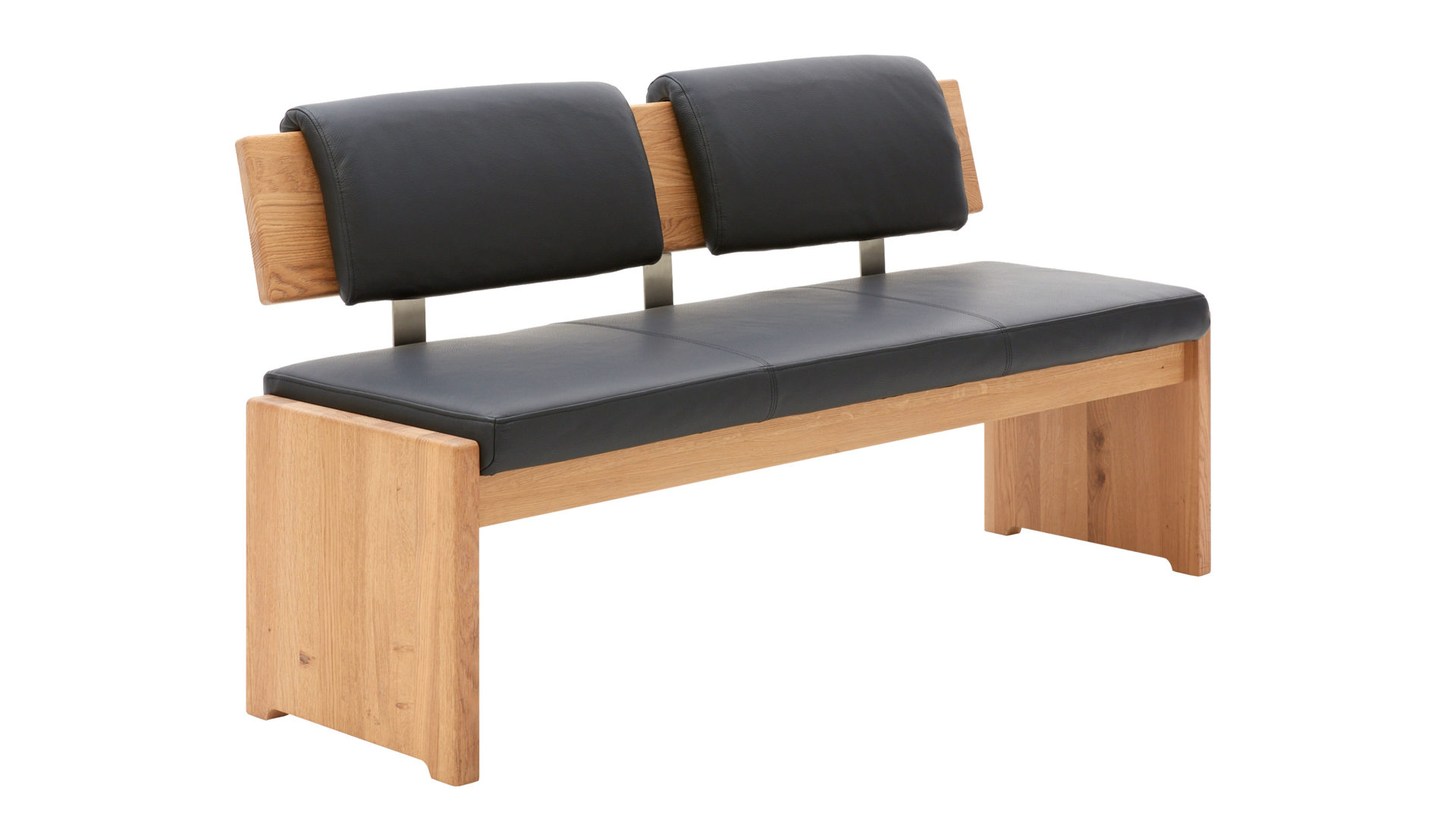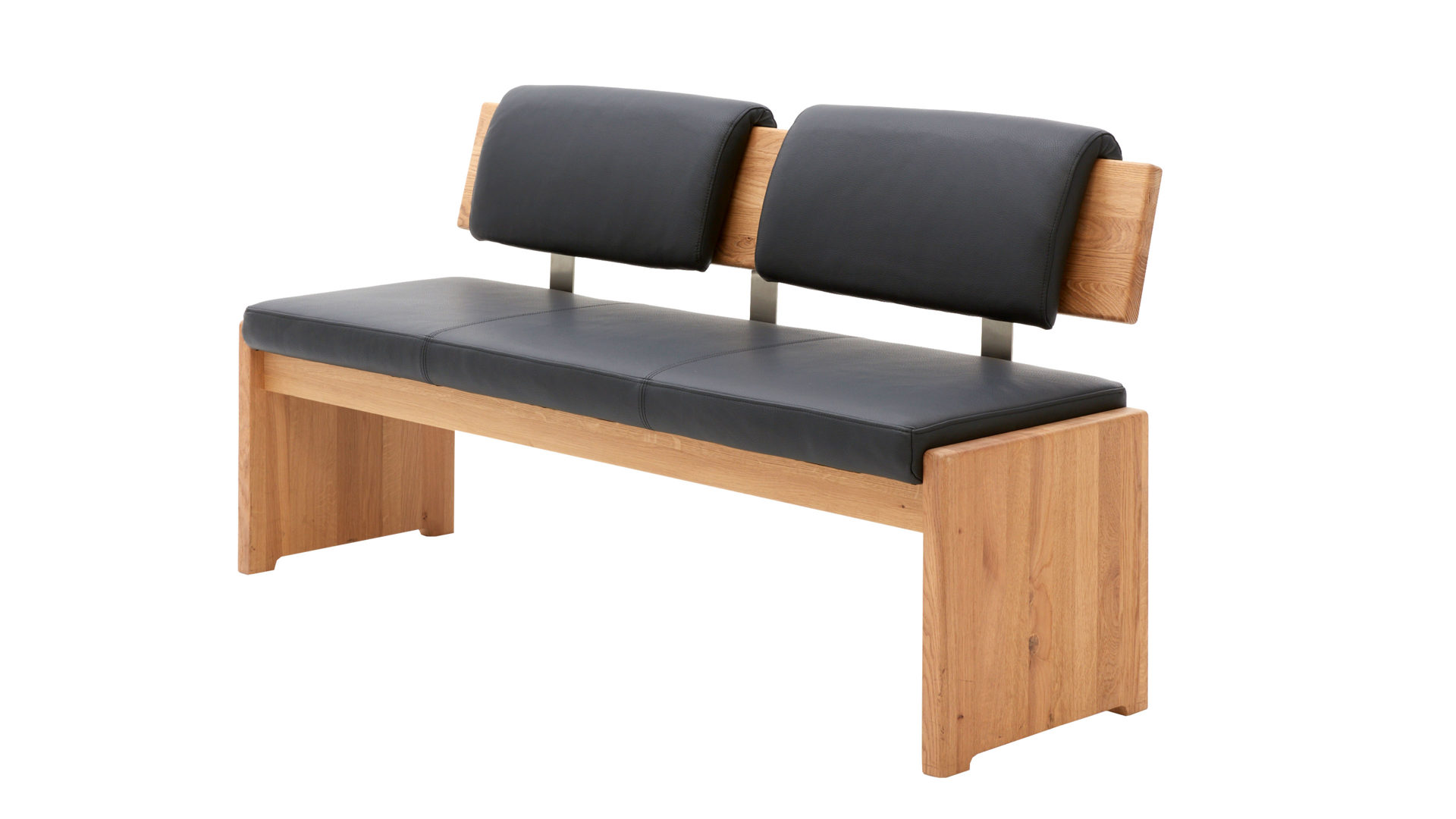Die Sitzbank begeistert in erster Linie durch die qualitativ hochwertigen Materialien und das schlicht-moderne Design mit klassischen Aspekten, das sich in die verschiedensten Wohnstile hervorragend einfügt. Das Sitzmöbel besteht aus biancofarben geölter und gebürsteter Wildeiche in Kombination mit einem anthrazitfarben gestalteten Lederbezug. Die gelungene Verbindung aus Holz und Leder verleiht der Esszimmerbank eine natürlich-elegante Ausstrahlung.