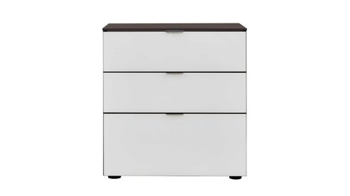 Zur Nachtkonsole gehören drei Schubladen - davon eine größere unten und zwei kleinere oben - mit praktischem Vollauszug. Darin können Sie verschiedene Gegenstände, die Sie in Bettnähe licht- und staubgeschützt aufbewahren wollen, bequem unterbringen - beispielsweise Ihre Lesebrille. Der Softeinzug sorgt dafür, dass sich die Schubkästen leichtgängig und vor allem geräuscharm schließen lassen. Mit dem Oberboden verfügen Sie über eine zusätzliche Ablagefläche, auf der etwa das Buch Platz findet, das Sie jeweils gerade lesen. Die Maße der erstklassig verarbeiteten Schubladenkommode belaufen sich auf ca. 40 x 58 x 40 cm (BxHxT).