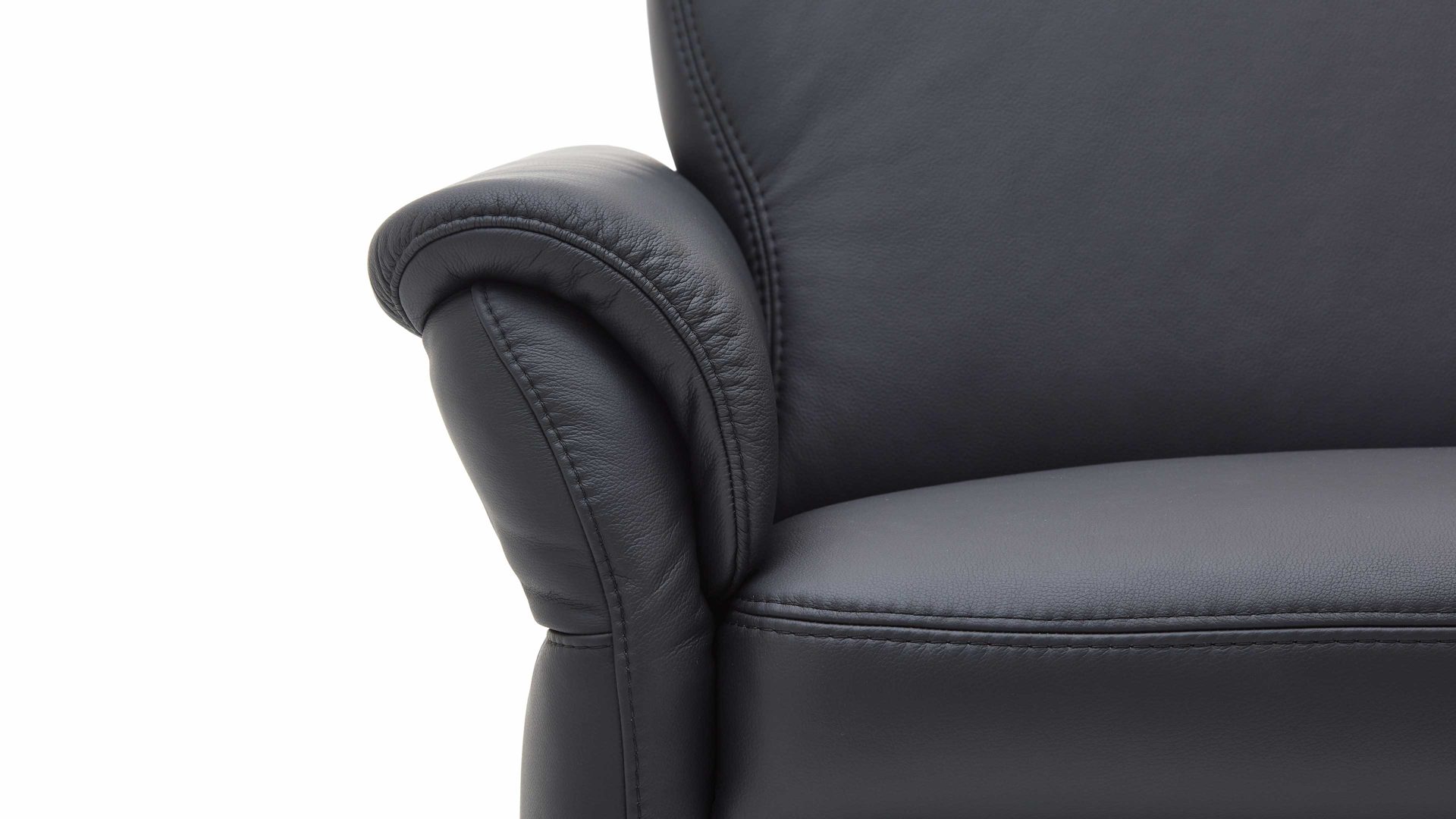 Neben den optischen Vorzügen begeistern die funktionalen Aspekte der Couch. Sie weist eine bequeme Federkernpolsterung auf hochwertiger Wellenunterfederung im Sitz sowie eine PUR-Schaumpolsterung im Rücken auf. In Kombination mit der angenehmen Haptik des Lederbezugs ergibt sich ein fantastischer Sitzkomfort. Für die nötige Robustheit sorgt das Holzgrundgestell. Überhaupt präsentiert sich der Leder-Dreisitzer bestens verarbeitet.