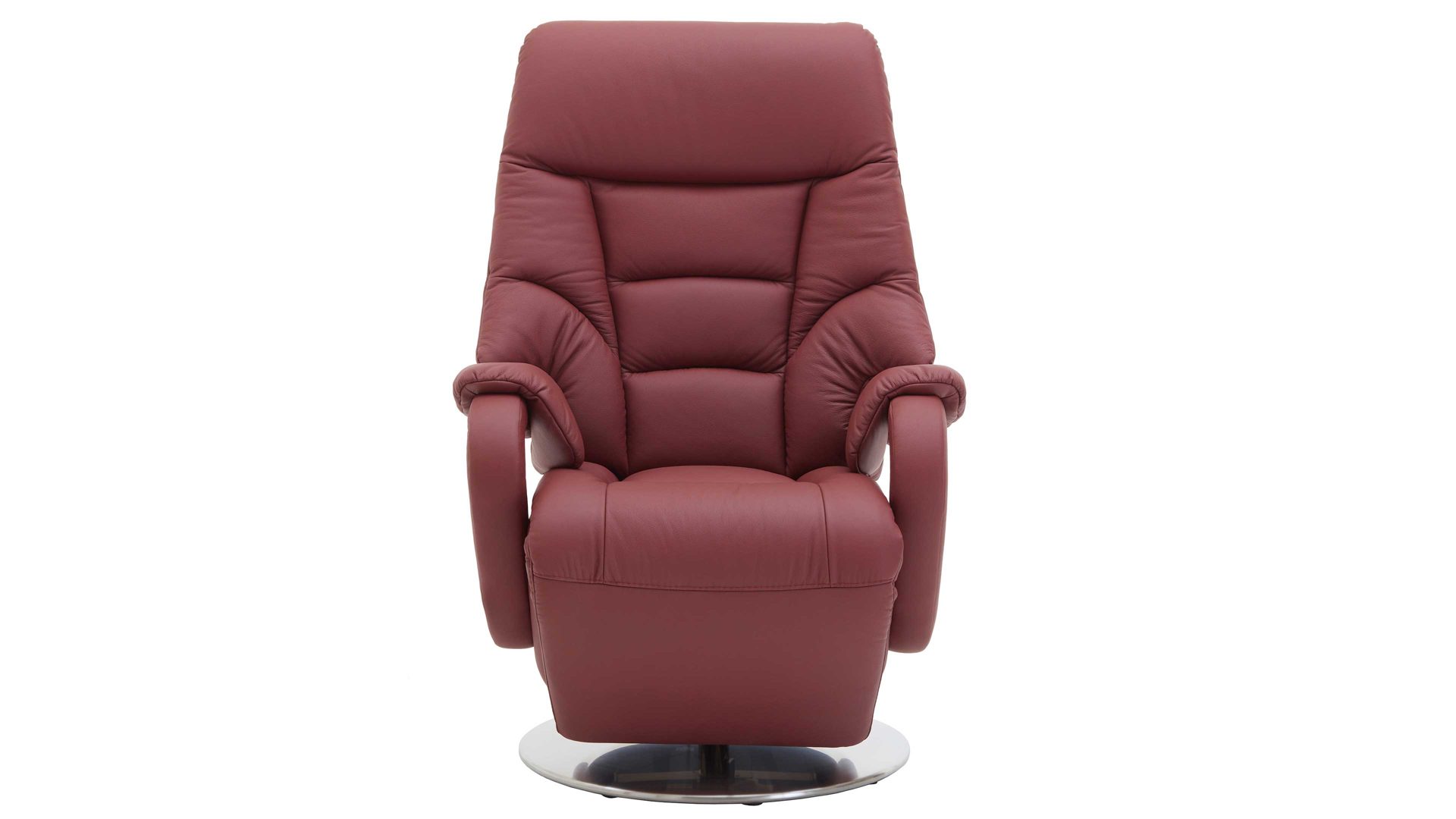 Dieser Relaxsessel kombiniert einen robusten glänzenden Edelstahl-Tellerfuß mit einem stilvollen merlotfarbenen LongLife-Lederbezug. Durch die top aufeinander abgestimmten Materialien und Farben strahlt der Fernsehsessel moderne Eleganz aus. Für die nötige Stabilität sorgt der Stahlrohrrahmen. Er macht den TV-Sessel bis 130 kg belastbar. Die Maße des hochwertig verarbeiteten Relaxsessels belaufen sich auf ca. 80 x 116 x 80 cm (BxHxT), bei einer Sitzhöhe von ca. 49 cm und einer Sitztiefe von ca. 55 cm.