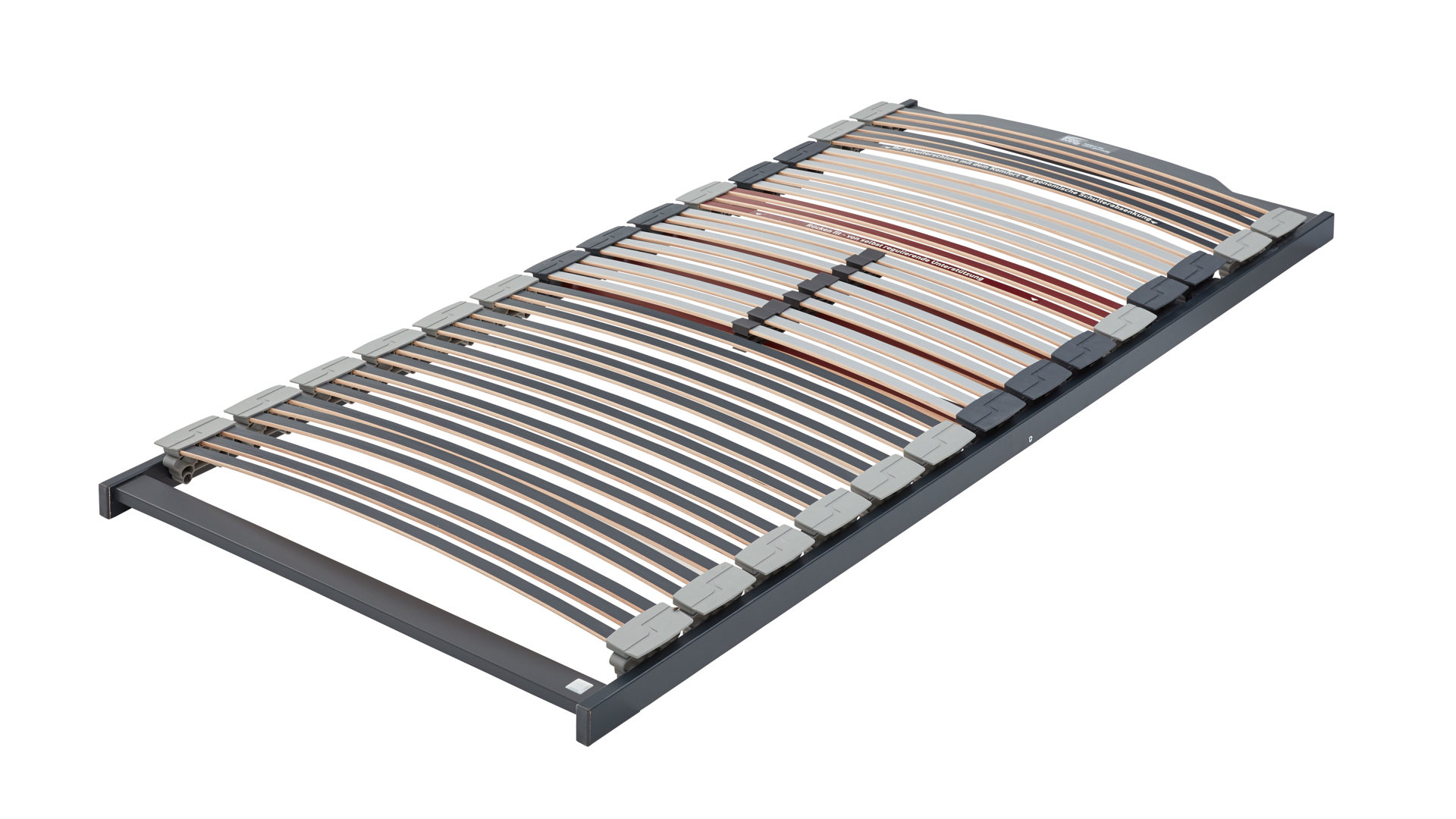 Die intelligente Beckenzone reguliert sich selbstständig und passt sich automatisch deinen individuellen Bedürfnissen an. Im Schulterbereich sorgt eine mechanische Absenkung dafür, dass der Lattenrost je nach Körperkontur sanft nachgibt. Das reduziert den Druck auf die Schulter, entlastet die Wirbelsäule und steigert spürbar den Liegekomfort – besonders für Seitenschläfer ein echtes Plus.