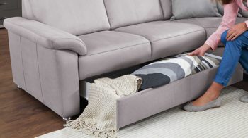 Die motorische Verstellung für die Recamiere bietet Ihnen weiteren Komfort: mit einem bequemen Knopfdruck bringen Sie sich in Liegeposition. Und wenn die Funktion nicht mehr benötigt wird, fährt die Liegefläche ebenso leicht mit Knopfdruck zurück.