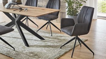 Auch praktisch weiß der komfortabel gepolsterte Esszimmerstuhl voll und ganz zu überzeugen: Er ist flexibel um 180 Grad drehbar. Durch die Rückholfunktion kehrt er einfach wieder in seine Ausgangsposition zurück.