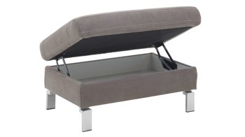 Der funktionale Polsterhocker wartet mit praktischem Stauraum auf. Der Hocker mit Maßen von ca. 70 x 45 x 70 cm (BxHxT) begeistert nicht nur mit seinem fangofarbenen Stoffbezug und seinen glänzenden Chromfüßen, sondern auch mit einer legeren Federkernpolsterung.
