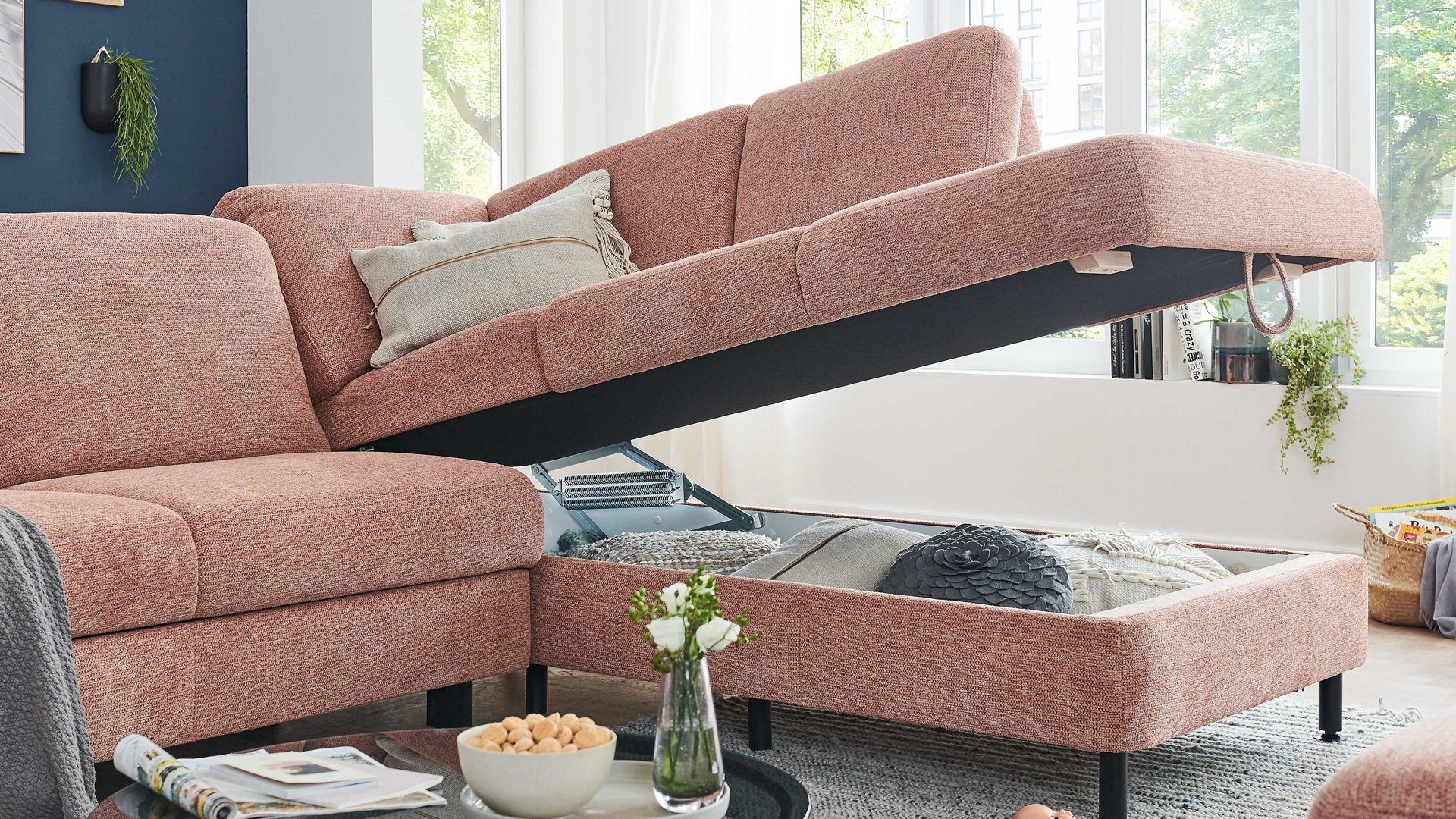 Diese Bettfunktion ist eine Mehrpreis-Funktion für die Type 2,5 EL aus dem Modulmaster Programm MM-ZE1129. Indem Sie den Sitz nach vorne ausziehen, erwirken Sie eine Liegefläche von ca. 123 x 291 cm (BxL), die serienmäßig mit Nesselstoff bezogen, gegen Mehrpreis aber auch im Originalstoff lieferbar ist. Als besonders praktisch erweist sich die Bettfunktion, wenn Gäste bei Ihnen übernachten.