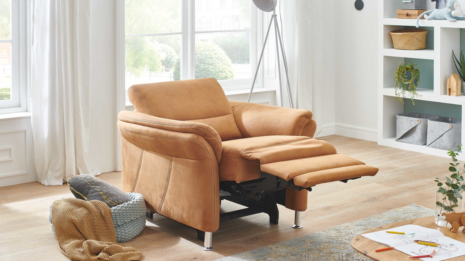 Hier die genaue Funktionsweise von WallAway: Während die Beinauflage auf Sitzhöhe fährt, bewegt sich der Sitz noch einige Zentimeter nach oben und vorne, sodass Sie sich von Kopf bis Fuß in eine komfortable Relaxposition begeben können. Diese lässt sich bis zur Liegeposition verstellen. Der Grund für die Bezeichnung der Funktion ist, dass der Rücken stets wandfrei bleibt. Demnach kann das jeweilige Möbel problemlos an seinem gewöhnlichen Standort bleiben und muss nicht vorgezogen werden.