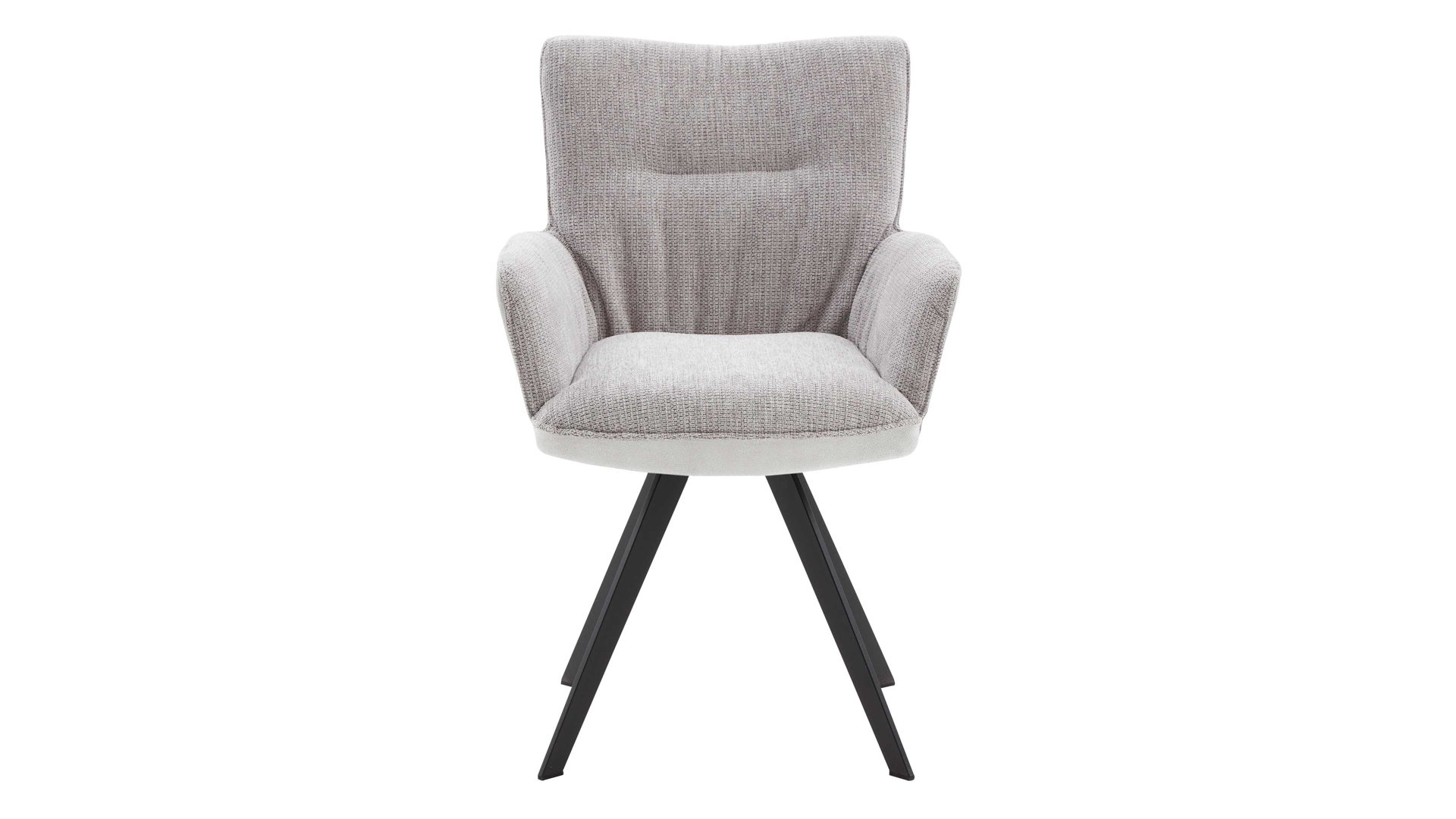 Der moderne Schalensessel 9222-04-959 aus der Interliving Esszimmer Serie 5111 kombiniert ein schwarzes Eisen-Stativgestell mit einer stilvollen platinfarbenen Bezugkombination.