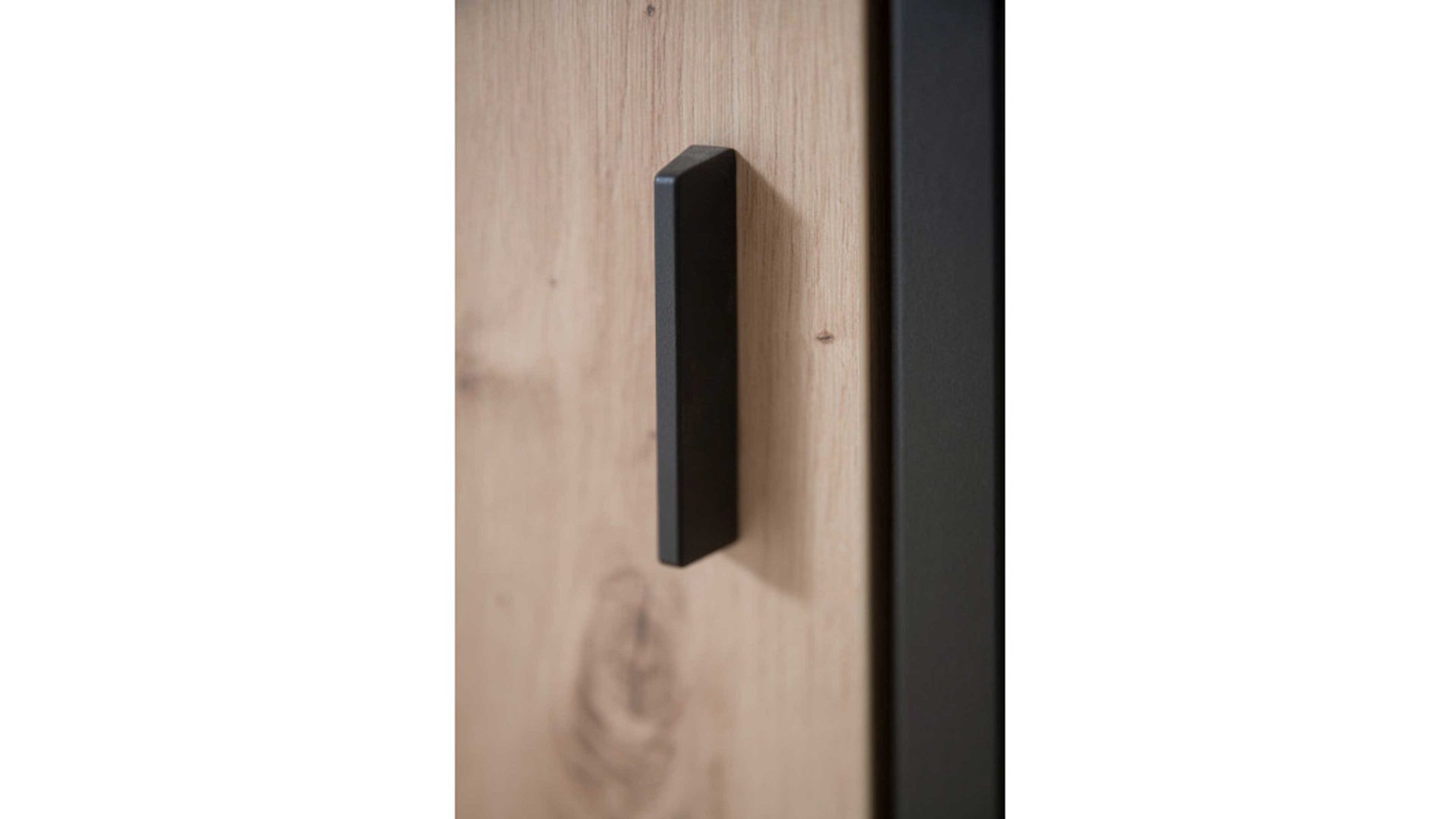 Die Wohnwand Algarve ergänzt Ihren Wohn- und Loungebereich mühelos um viel dekorativen Stauraum und umso mehr stimmungsvolles Flair. Harmonisch greifen die lackierten Metallgriffe den anthrazitfarbenen Dekor-Korpusrahmen auf. Das Design in Balkeneiche und Anthrazit bringt einen modernen Industrial Vibe in die eigenen vier Wände. Gleichzeitig passt die Gestaltung zu zahlreichen Einrichtungsstilen.