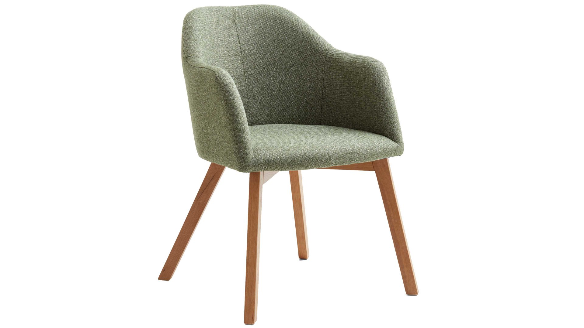 Der Polsterstuhl Lagos begeistert mit den hochwertigen Materialien, der erstklassigen Verarbeitungsqualität, dem stilvollen Design und dem hohen Komfort. Als stabile Basis fungiert ein lackiertes Eichenholzgestell, das natürlichen, warmen Charme verströmt und hervorragend mit dem dunkelgrünen Stoffbezug harmoniert. In Kombination sorgen die Materialien und Farben für eine moderne und gemütliche Ausstrahlung. Einen gelungenen Akzent setzt die umlaufende Ledernaht.