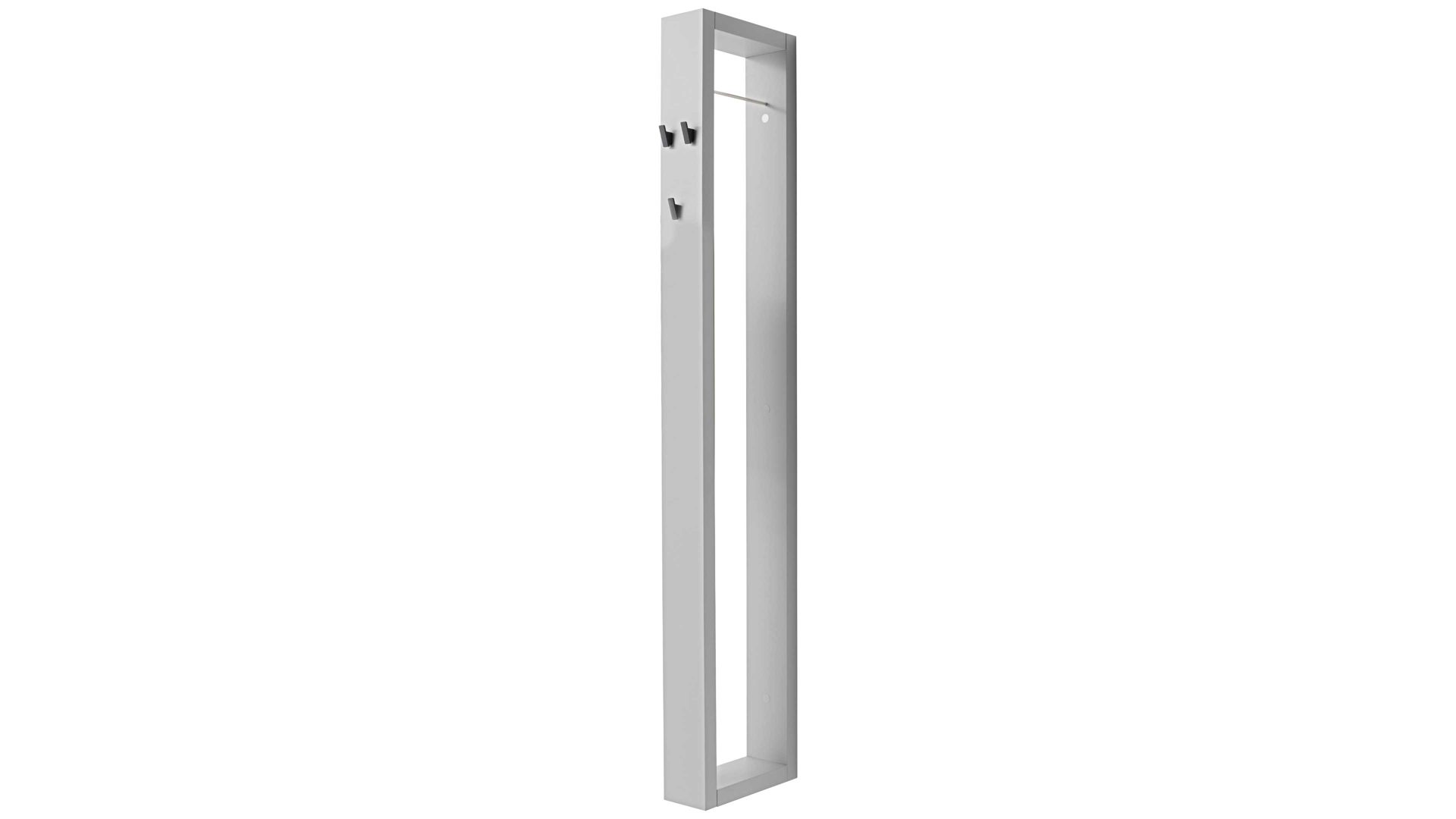 Auf der Kleiderstange und den drei Garderobenhaken können Sie Jacken, Mäntel und andere Kleidung, aber auch nützliche Utensilien wie Schlüssel oder Schirme aufhängen. Darüber hinaus bieten der obere und der untere Boden etwas Platz für kleinere Gegenstände. Die Maße des stabilen Garderobenpaneels betragen ca. 13 x 172 x 32 cm (BxHxT).