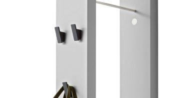 Die chromfarbene Kleiderstange sowie die schwarzen Garderobenhaken runden das stilvolle Design harmonisch ab. Dank der robusten Materialien ist die Flurgarderobe langlebig und außerdem angenehm pflegeleicht.