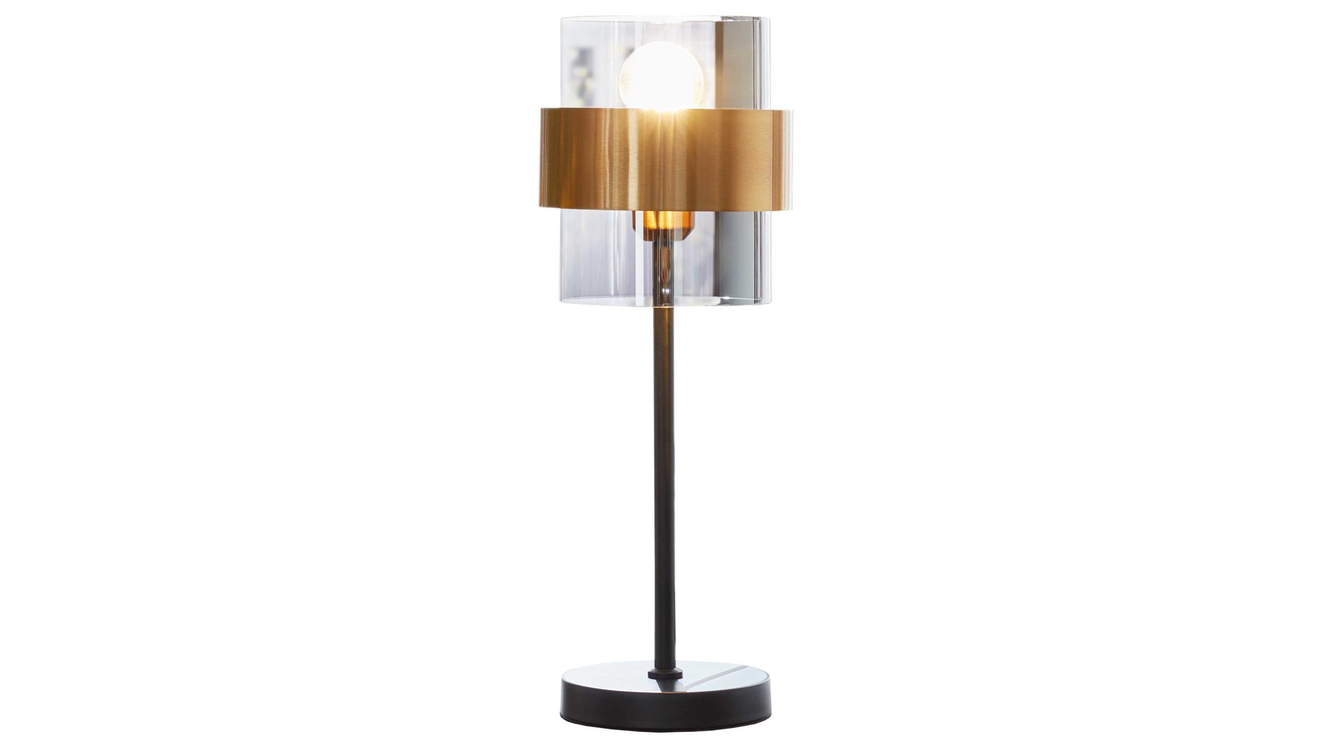 Die Tischleuchte aus der Interliving LeuchtenSerie 9333 vereint modernes Design mit einem Hauch Extravaganz und wird so zum stilvollen Blickfang auf Schreibtisch, Sideboard oder Nachttisch. Das Gestell aus klassisch mattschwarzem Metall harmoniert perfekt mit dem rauchfarbenen Glasschirm, der von einem gebürsteten messingfarbenen Metallring eingefasst ist. Diese elegante Kombination verleiht der Leuchte ihren besonderen Charakter und sorgt für ein warmes, wohnliches Lichtambiente.