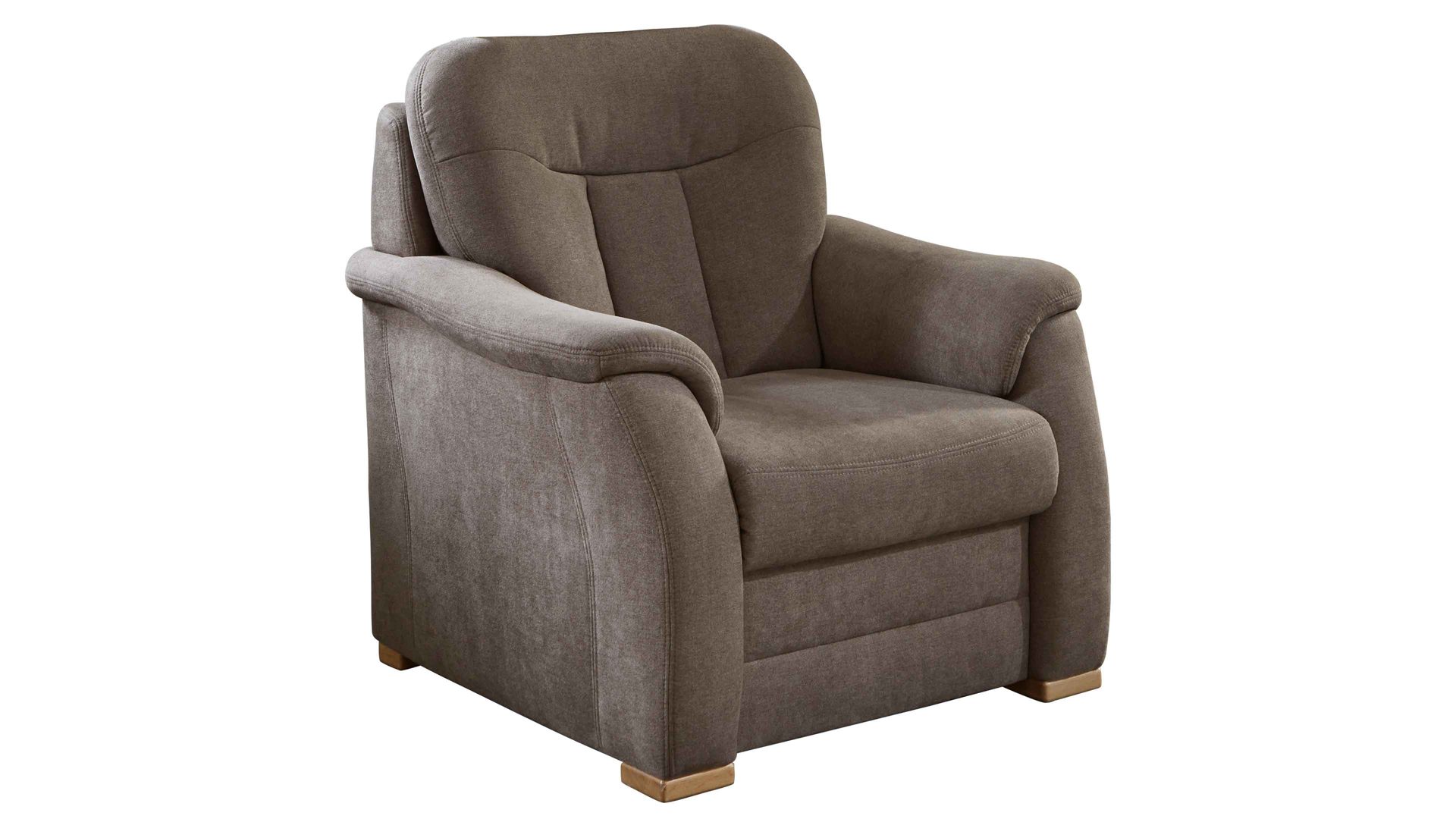 Der Polstersessel aus dem Modulmaster-Programm MM-PP1013 ist mit einem edlen mandelfarbenen Mikrofaserbezug und eichebiancofarbenen Holzfüßen versehen. Er strahlt moderne Eleganz mit natürlichem Charme aus.