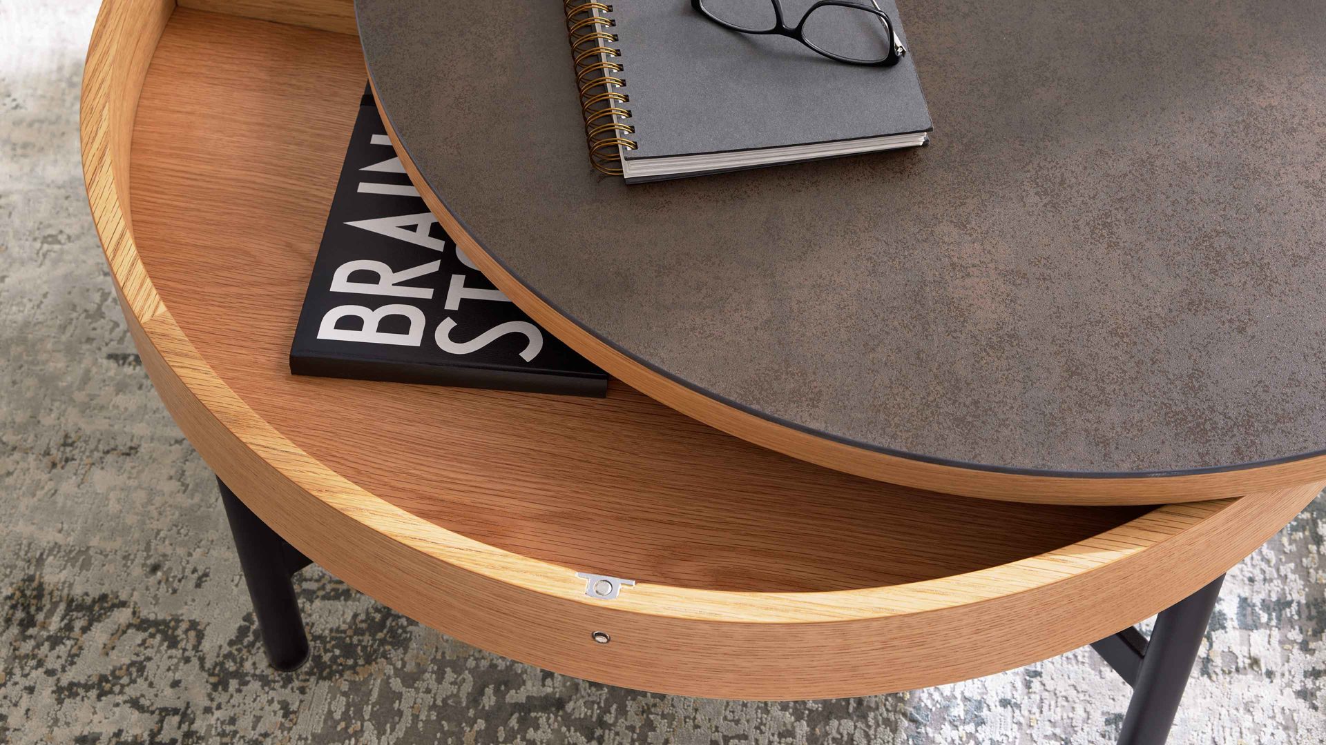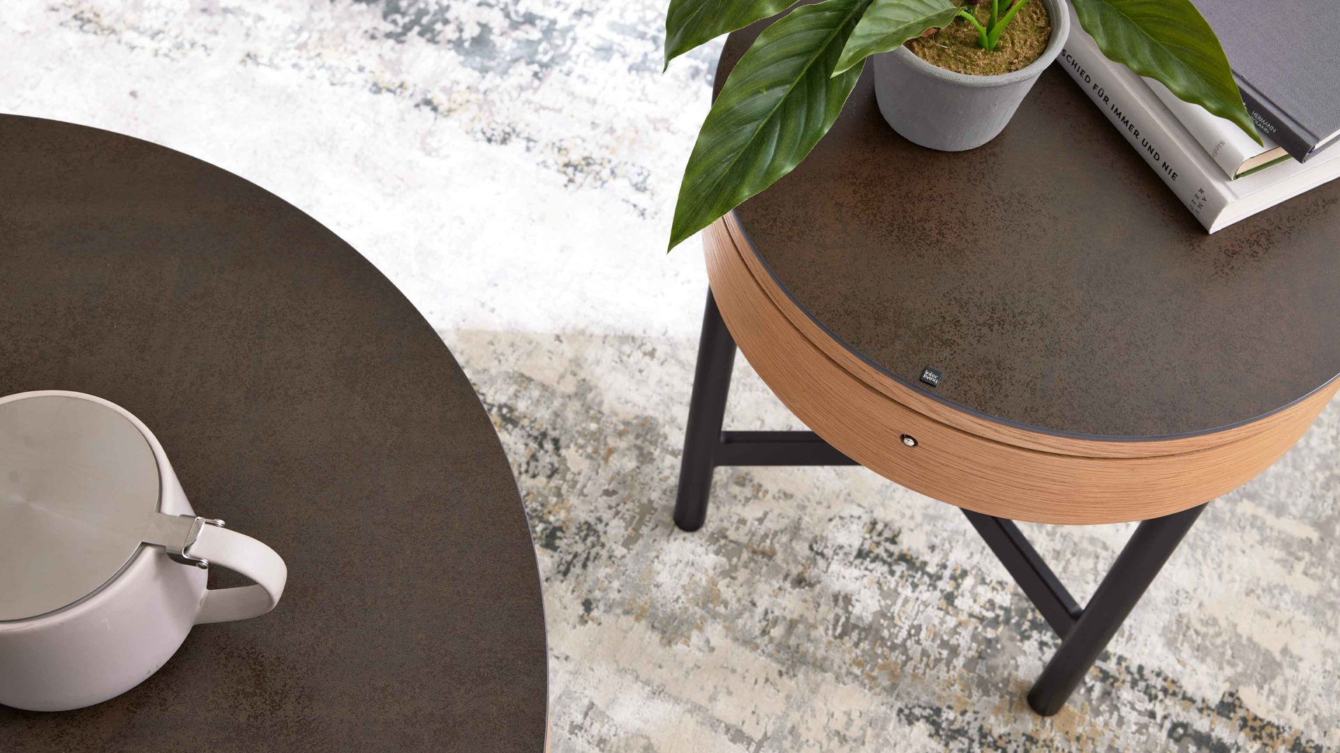 Die Serie bietet neben dem Beistelltisch auch eine größere Variante als Couchtisch – ideal, wenn Sie mehrere Stauraumtische in einem abgestimmten Designkonzept kombinieren möchten.