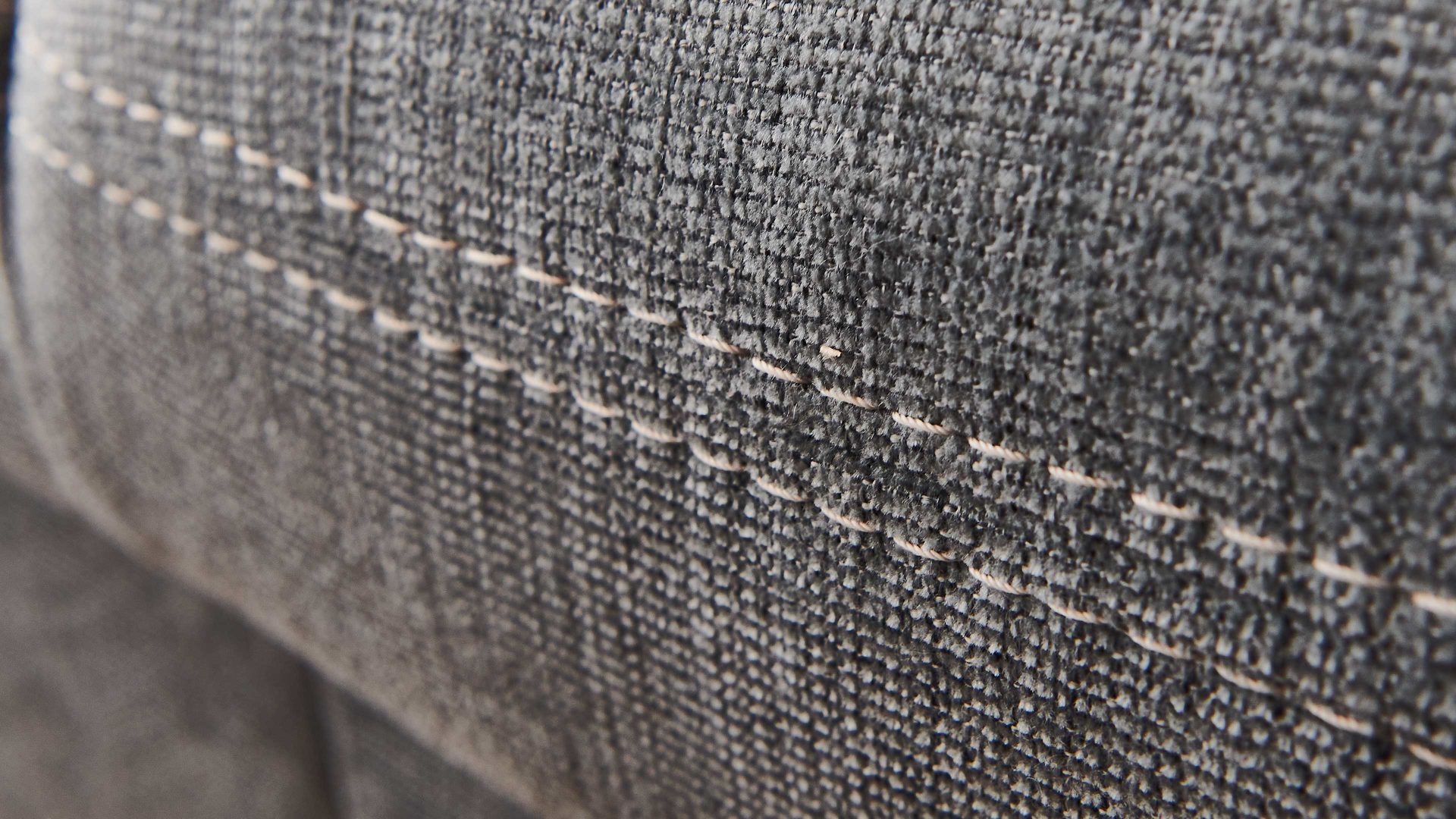 stahlfarbener Stoffbezug mit beiger Kontrast-Doppelsteppnaht