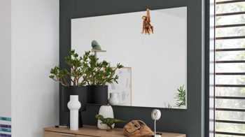 Der rahmenlose Spiegel in ca. 80 x 82 x 3 cm (B/LxHxT) bringt sofort mehr Licht und Weite in deinen Eingangsbereich. Das klare Spiegelglas trifft auf ein hinterlegtes Element in anthrazitfarbenem Mattlack – modern, unaufdringlich und passend zu jedem Flurstil.