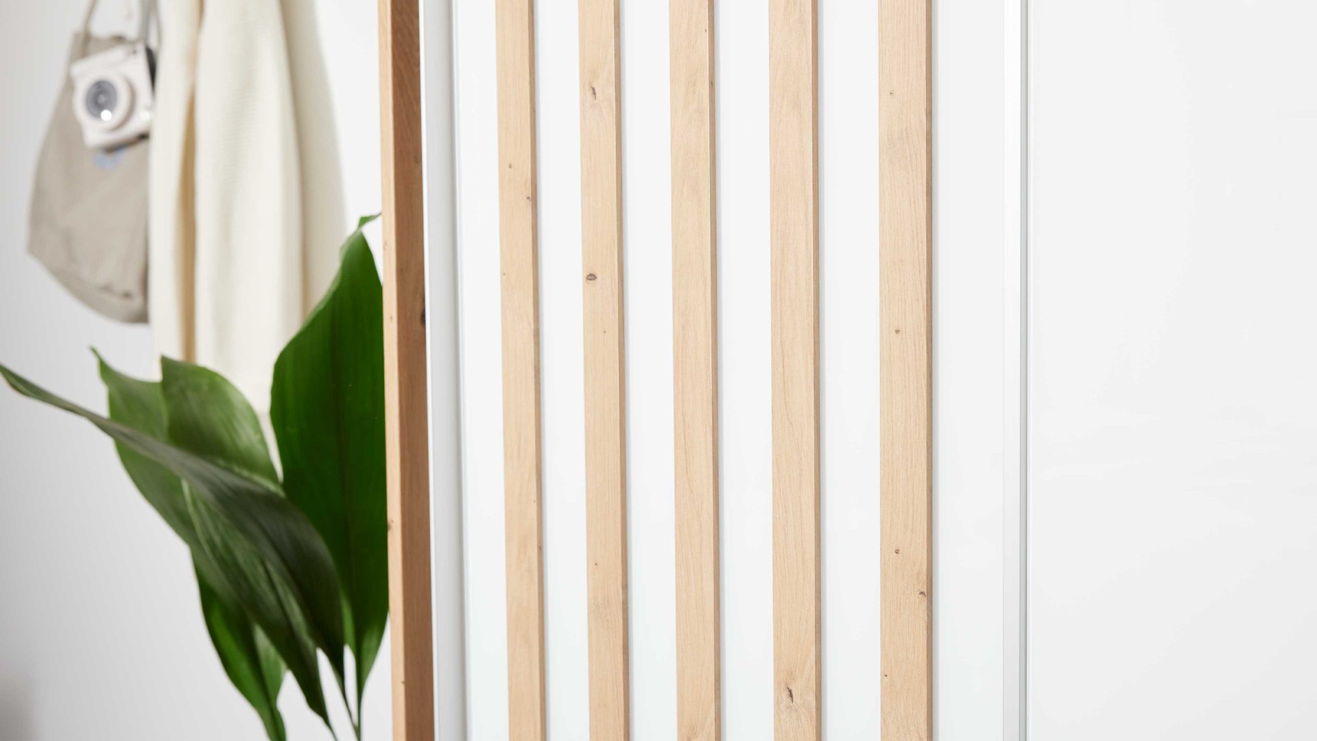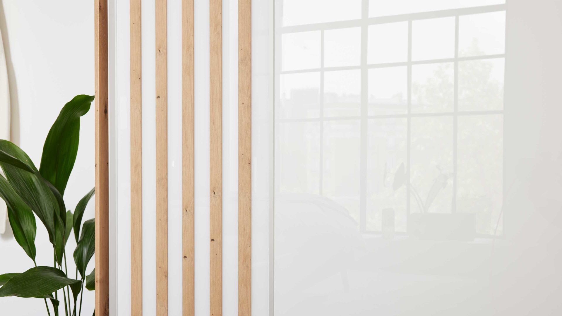 Mit dem Schwebetürenschrank aus der Interliving Kleiderschrank Serie 1208 zieht stilvolle Zurückhaltung mit einem Hauch von Luxus in dein Schlafzimmer ein. Die alpinweißen Glasfronten wirken puristisch und edel zugleich, während Akzente in Artisan-Eiche-Nachbildung für natürliche Wärme sorgen. Matt aluminiumfarbene Griffleisten und die hochwertige Texline-Innenausstattung runden das moderne Design harmonisch ab.