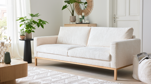 Das Roomio 4105 3-Sitzer Sofa in elegantem Weiß bietet eine perfekte Kombination aus Stil und Komfort. Bezogen mit hochwertigem Boucle-Stoff, strahlt dieses Möbelstück skandinavisches Design mit zeitloser Eleganz aus. Der Stoff besteht zu 100% aus Polyester, was Langlebigkeit und leichte Pflege garantiert.