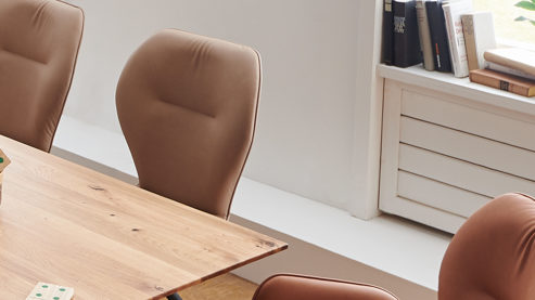 Bei Cloudy handelt es sich um ein umfangreiches Möbelprogramm bestehend aus Esszimmerstühlen und dazu passenden Esstischen. Die Stühle gehen mit einer großen Stoff- und Ledervielfalt einher. Darüber hinaus sind sie mit zwei Sitzschalen und drei Gestellen sowie mit und ohne Drehfunktion und Armlehnen erhältlich. Gegen Mehrpreis stehen auch Filzgleiter für das Metallstativ zur Wahl.