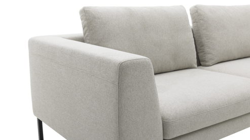 Das 3-Sitzer Sofa »Roomio No. 4101« beeindruckt durch seine elegante Sandfarbene Optik und ist in einer breiten Auswahl an Bezugsstoffen und Farben erhältlich. Mit den großzügigen Maßen von 230 x 83 x 98 cm bietet dieses Sofa eine komfortable Sitzhöhe von 46 cm und eine Sitztiefe von 57 cm, die Ihnen ein besonders softes Sitzvergnügen bietet. Die moderne Ästhetik wird durch die schwarzen, matten Metallkufen unterstrichen, die dem Design eine zeitgemäße Note verleihen. Der strapazierfähige Bezug »Simply Clean Sand« garantiert neben seiner stilvollen Erscheinung auch leichte Pflege.