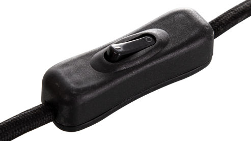 die Wohnraumleuchte wird mit dem Wippschalter am weißen Textilkabel an- und ausgeschaltet