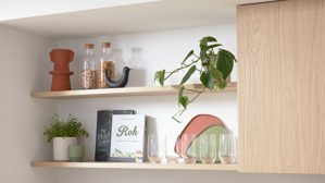 Besonders prägend für die Culineo® Einbauküche C187 sind die grifflosen Hängeschränke, die klare Linien und ein modernes Erscheinungsbild schaffen. Der offene Stauraum bietet Platz für Gläser, Dekoration oder Kochbücher und bringt Leichtigkeit in das Design. Zusammen mit den natürlichen Eiche-Akzenten entsteht ein warmes, einladendes Ambiente, das Stil und Komfort perfekt vereint.
