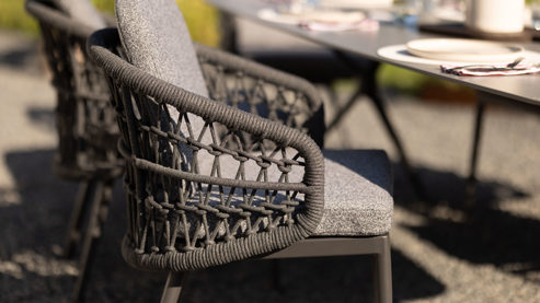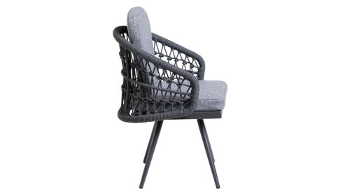 Der Garten-Polsterstuhl überzeugt mit einer stilvollen Kombination aus anthrazitfarbenem Aluminiumgestell, robuster Rope-Bespannung und einem angenehm weichen Olefin-Teddybezug in Grau. Das handgeflochtene Seil mit ca. 10 mm Durchmesser sorgt für Langlebigkeit und stilvolle Struktur. Der Outdoor-Armlehnstuhl bietet mit losen Sitz- und Rückenkissen ein besonders angenehmes Sitzgefühl. Die Bezüge sind wetterfest, UV-beständig, atmungsaktiv, abriebfest und waschbar bei 30 °C – perfekt für den Einsatz im Freien.