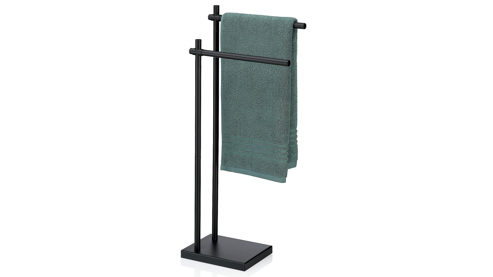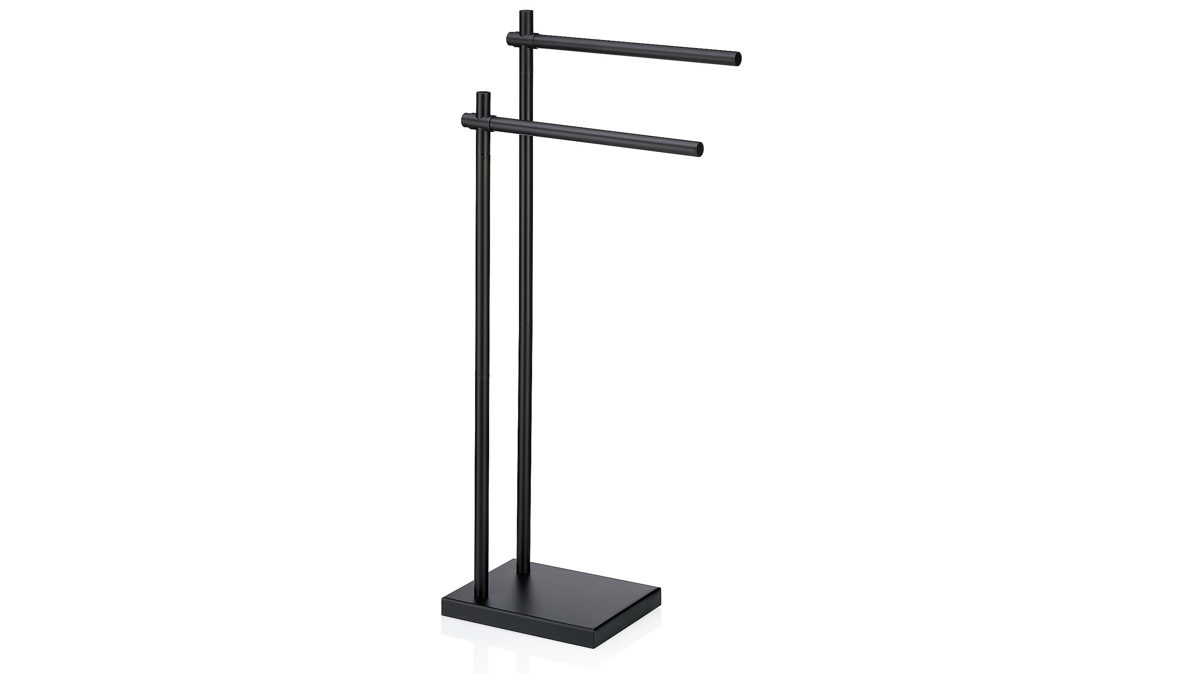Komplettieren Sie Ihr Badezimmer mit dem eleganten Devin Handtuchhalter, der perfekt zur Devin Toilettengarnitur passt. Dieser mattschwarze Handtuchhalter aus hochwertigem, pulverbeschichtetem Metall bietet zwei Halterungen für Handtücher, die auf gleicher Höhe oder leicht höhenversetzt montiert werden können. Maße ca. 18 x 79 x 36 cm (BxHxT)