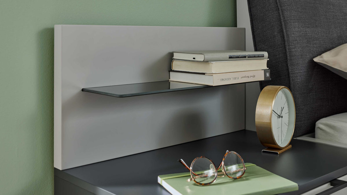Mit Maßen von ca. 46 x 30 x 18 cm (B/LxHxT) bietet das Paneel eine praktische Ablagefläche für Bücher, Deko oder persönliche Gegenstände. Es wird rechtsseitig am Bett montiert und fügt sich harmonisch in das Gesamtkonzept der Serie ein.