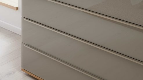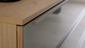 Die Interliving Schlafzimmer Serie 1210 überzeugt durch eine durchdachte Planungsvielfalt. Neben klassischen und wandhängenden Nachttischen bietet sie planbare Kleiderschränke in zwei Höhen, Sonderanfertigungen für Dachschrägen, passende Bettgestelle mit vierfach höhenverstellbarer Einlegetiefe sowie zahlreiche Kommodenlösungen. Materialien und Farben lassen sich individuell kombinieren – von Balkeneiche-Echtholzfurnier über weiße oder basaltfarbene Lackoberflächen bis zu Glas in Weiß, Sand, Seidengrau oder Taupe, ergänzt durch drei Griffvarianten.