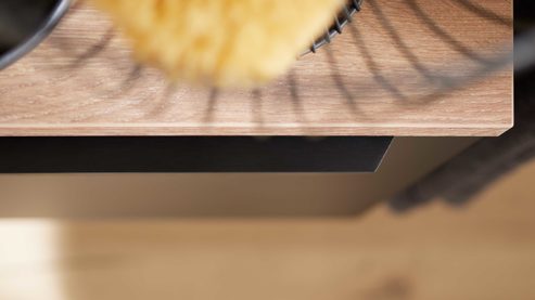 Der Waschtischunterschrank (Typ 2488) überzeugt mit supermatter schwarzer Lacklaminatfront, schwarzem Relinggriff (Typ 7945) und mattschwarzem Korpus. Ein großer Auszug mit Rückwand sorgt für Ordnung, für noch mehr Komfort ist die große Schublade mit Softclose und Selbsteinzug ausgestattet. Praktische Handtuchhalter kannst du gegen Mehrpreis ergänzen.