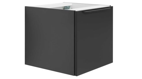 Ein rechts angeschlagener Unterschrank mit einer Tür (Typ 2432) bietet dir Stauraum für Handtücher oder Aufbewahrungskörbe. Maße: ca. 45 x 43 x 46 cm (B/LxHxT)