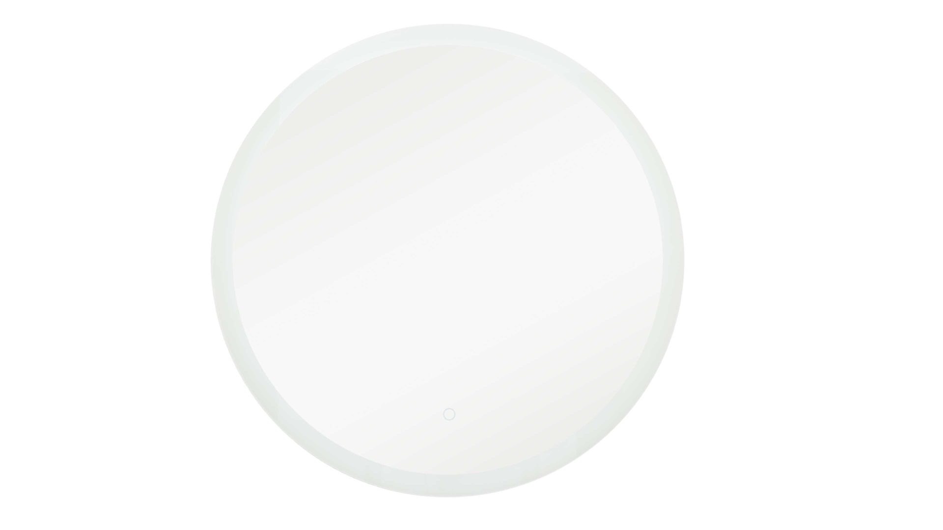 Für stimmungsvolle Beleuchtung sorgt der beleuchtete Wandspiegel (Typ 15202) mit umlaufendem sandgestrahltem LED-Lichtfenster und Touchsensor. Der Spiegel hat einen Durchmesser von ca. 75 cm, ist ca. 3 cm tief und mit einem fest verbauten, nicht austauschbaren LED-Leuchtmittel (20 Watt) der Energieeffizienzklasse F (Spektrum A bis G) ausgestattet – inklusive Konverter.
