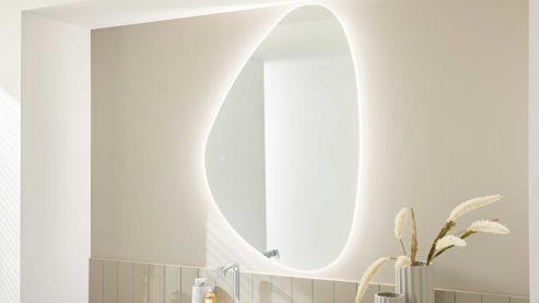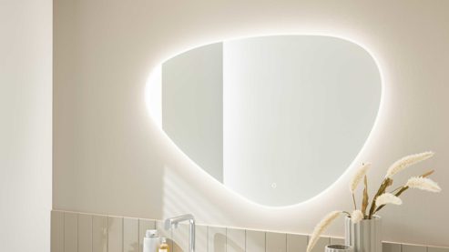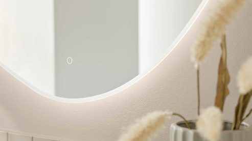 Der LED-Wandspiegel bringt modernes Lichtdesign in dein Badezimmer. Seine organische Form und der umlaufende, sandgestrahlte LED-Lichtrahmen schaffen eine angenehme, gleichmäßige Ausleuchtung. Der Spiegel kann horizontal oder vertikal montiert werden und misst ca. 120 x 2,4 x 80 cm (B/LxHxT). Über den integrierten Touchdimmer lässt sich die Farbtemperatur zwischen 3000 und 6000 Kelvin flexibel einstellen. Die fest verbauten LED-Leuchtmittel (17 Watt) entsprechen der Energieeffizienzklasse E (Spektrum A bis G).