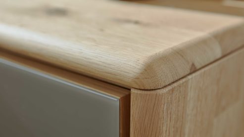 Du kannst aus zwei Holz- und Mattglasfarben sowie zwei Stofffarben wählen und so den Look deines Schlafzimmers perfekt auf deinen Stil abstimmen. Ob Bettgestell mit Holz- oder Polsterkopfteil, elegante Beimöbel oder durchdachte Schranklösungen – alles ist aufeinander abgestimmt und individuell planbar.
