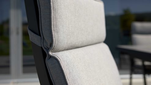 Die Hochlehner kommen mit einer anthrazitfarbenen TEXTILENE®-Bespannung, die modern aussieht und sich gleichzeitig angenehm an deinen Körper anpasst. Das Material ist reißfest, UV- und witterungsbeständig sowie schnelltrocknend – ideal für wechselhaftes Outdoorwetter.