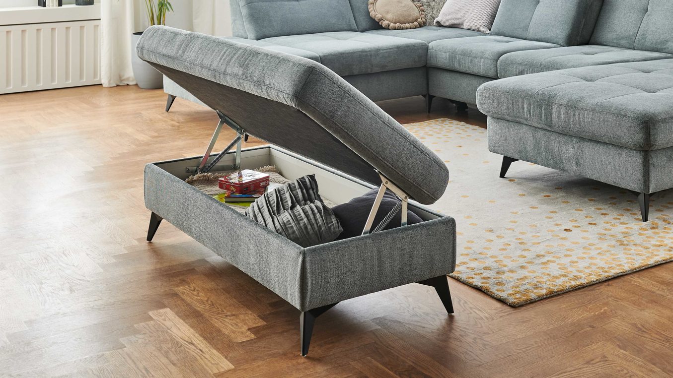 Der XXL-Funktionshocker aus der Modulmaster Serie MM-MP1206 ergänzt Ihre Wohnlandschaft um ein vielseitiges Komfortelement mit modernem Design. Der stahlfarbene Flachgewebebezug aus recyceltem Polyester wirkt zeitlos und hochwertig, während mattschwarze Metall-Winkelfüße dem Hocker eine klare, moderne Linie verleihen. Ideal als Sitzgelegenheit, Fußhocker oder praktische Ergänzung zum Sofa.