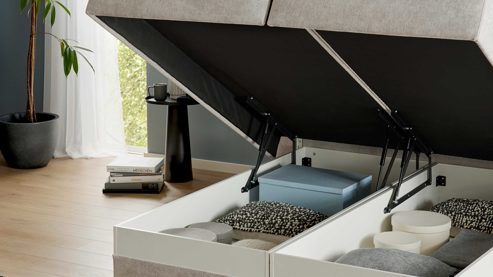 Optionale Ausstattungen wie motorische Verstellungen, ein Bettkasten oder eine dezente Beleuchtung machen das Bett zu einem individuell anpassbaren Schlafsystem, das sich deinem Alltag perfekt anpasst.