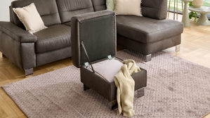 • Die Abbildung zeigt ein Wohnbeispiel, welches auch Dekoration sowie separat erhältliches Zubehör enthält. Im Lieferumfang enthalten ist ein Polsterhocker.