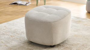 sandfarbener Chenillebezug & mattschwarzer Sternfuß
