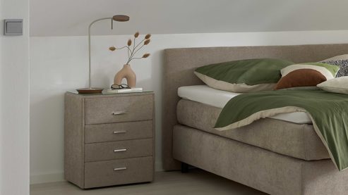 Kommode, Paneele, Matratzen, Lattenrostrahmen und weitere dargestellte Einrichtungsgegenstände sind separat gegen Mehrpreis bestellbar.