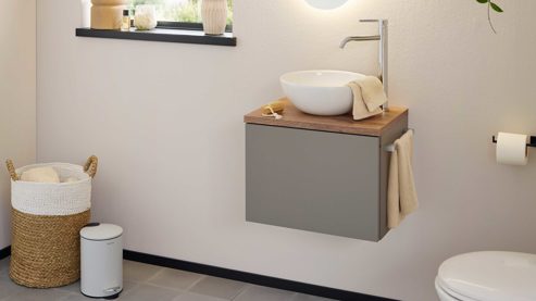 Eine Armatur und weitere dargestellte Einrichtungsgegenstände sind separat gegen Mehrpreis bestellbar.
